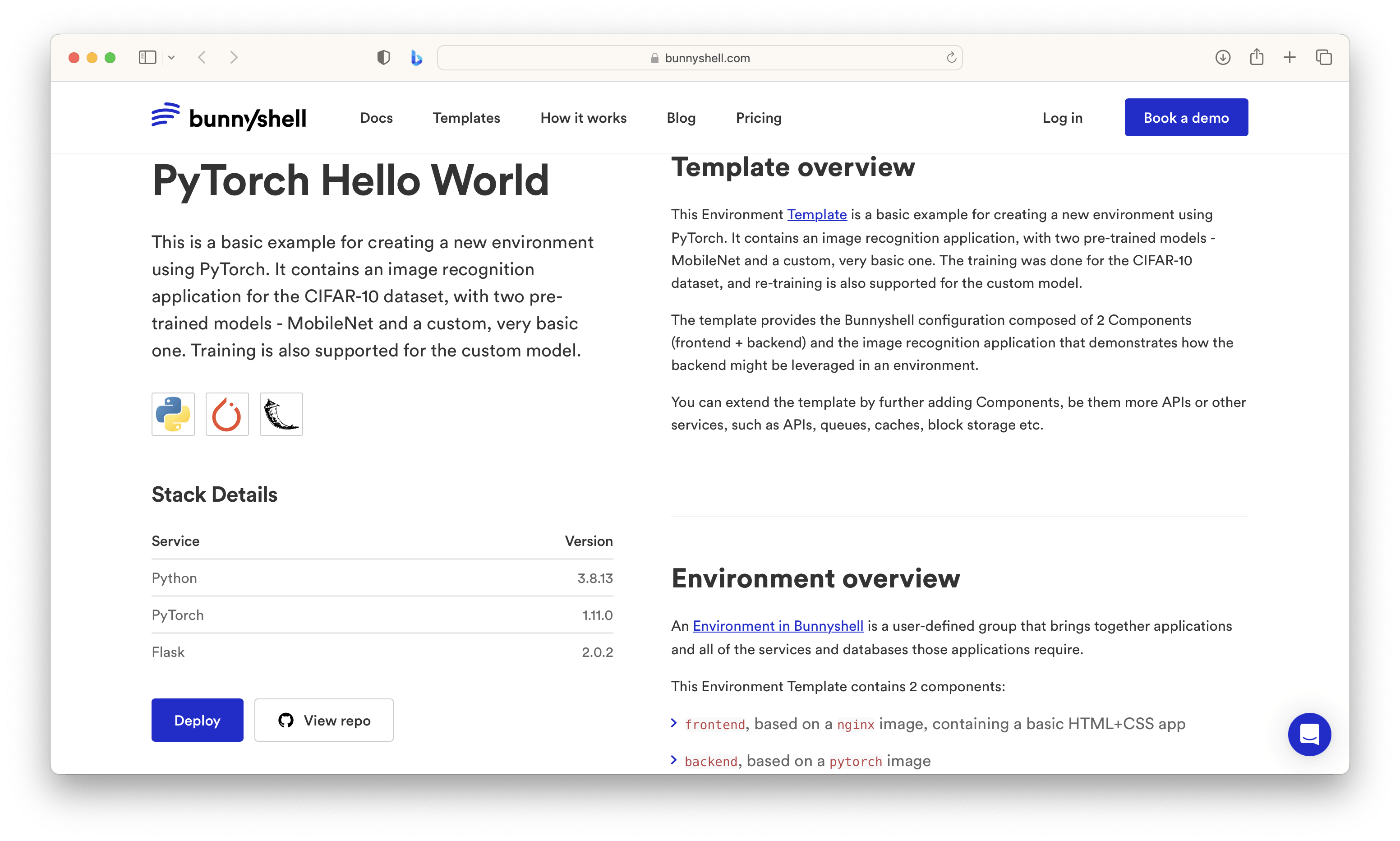 This is a short how-to guide on setting up a PyTorch and Python environment using Bunnyshell Templates for an AI project.
