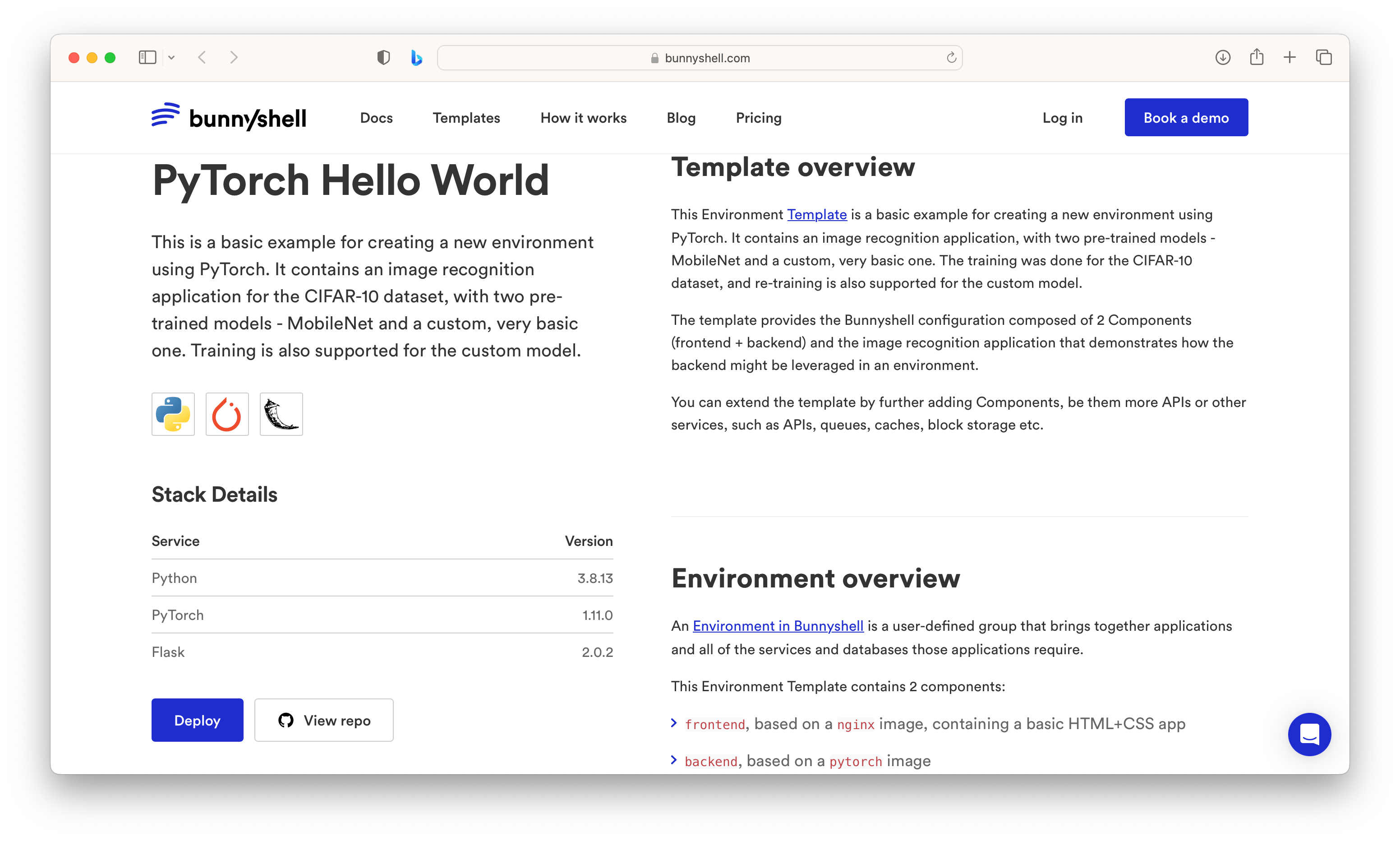 *This is a short how-to guide on setting up a PyTorch and Python environment using Bunnyshell Templates for an AI project.