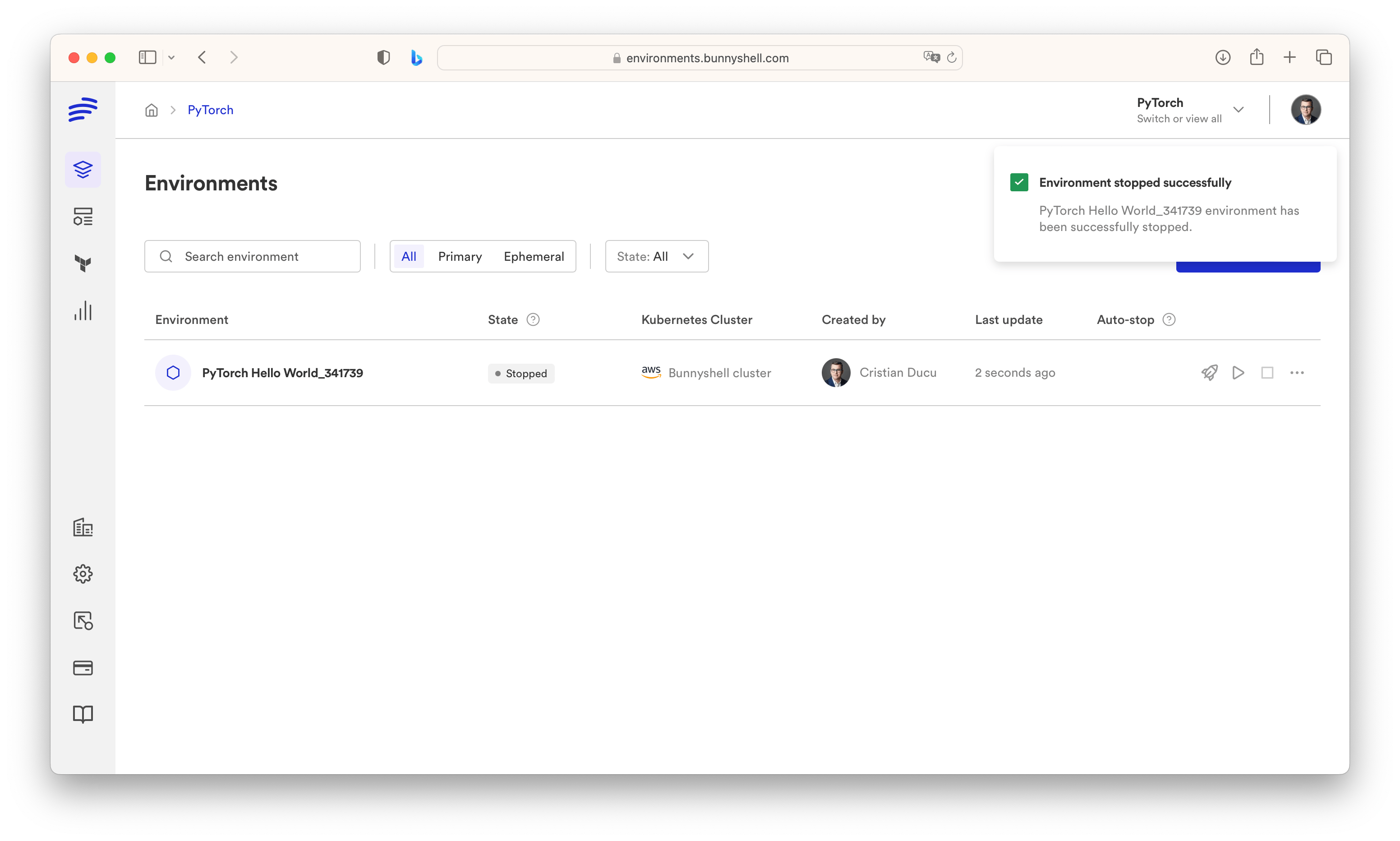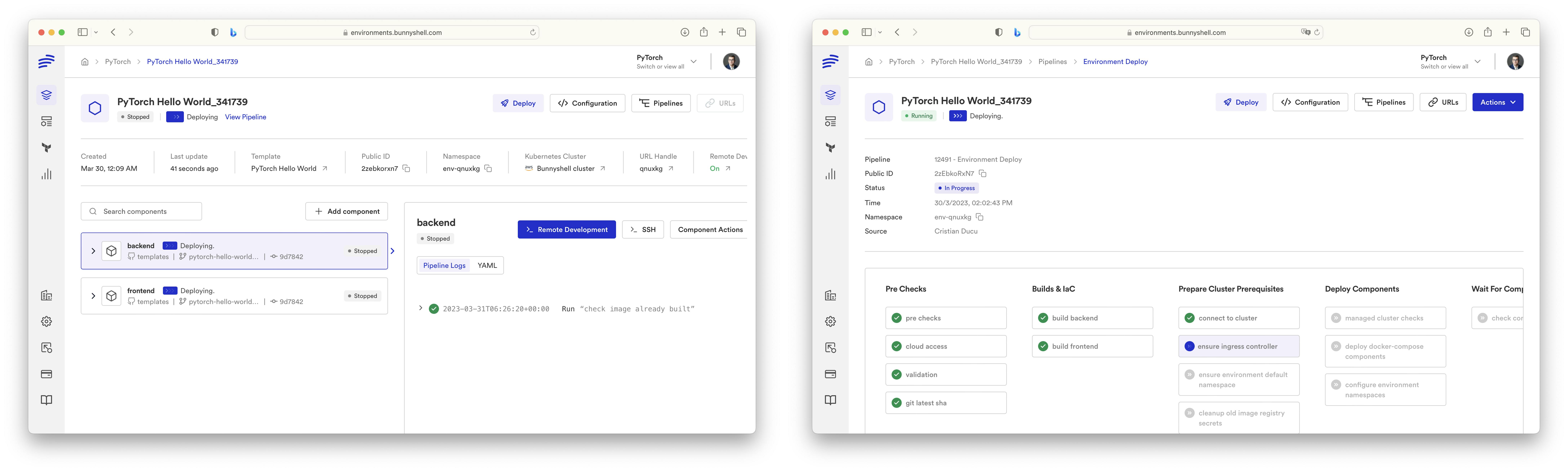 Step 2. Bunnyshell automatically deploys PyTorch environment