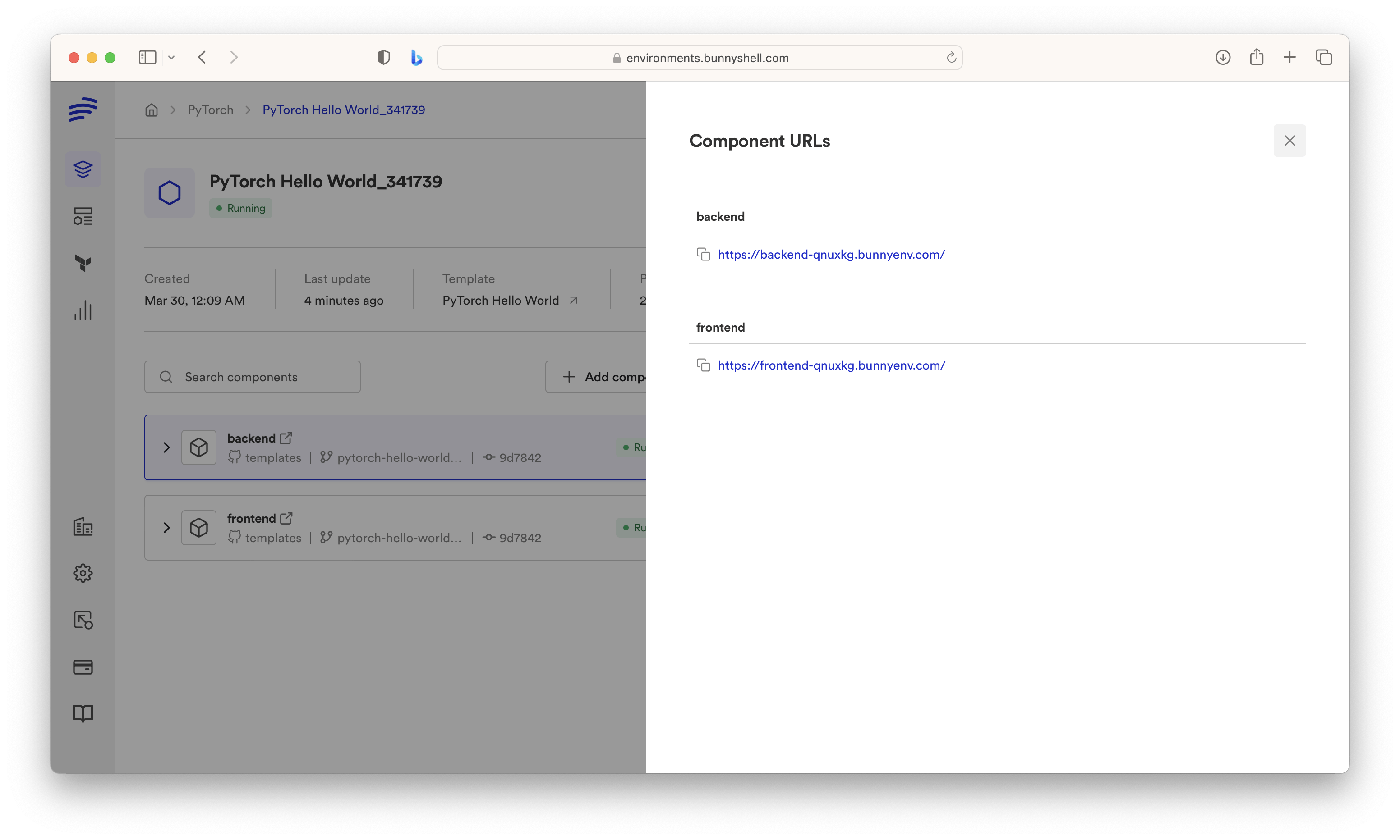 Now you can modify the code and then check changes in the URLs that you can find in the URLs button from the Environment details in Bunnyshell.