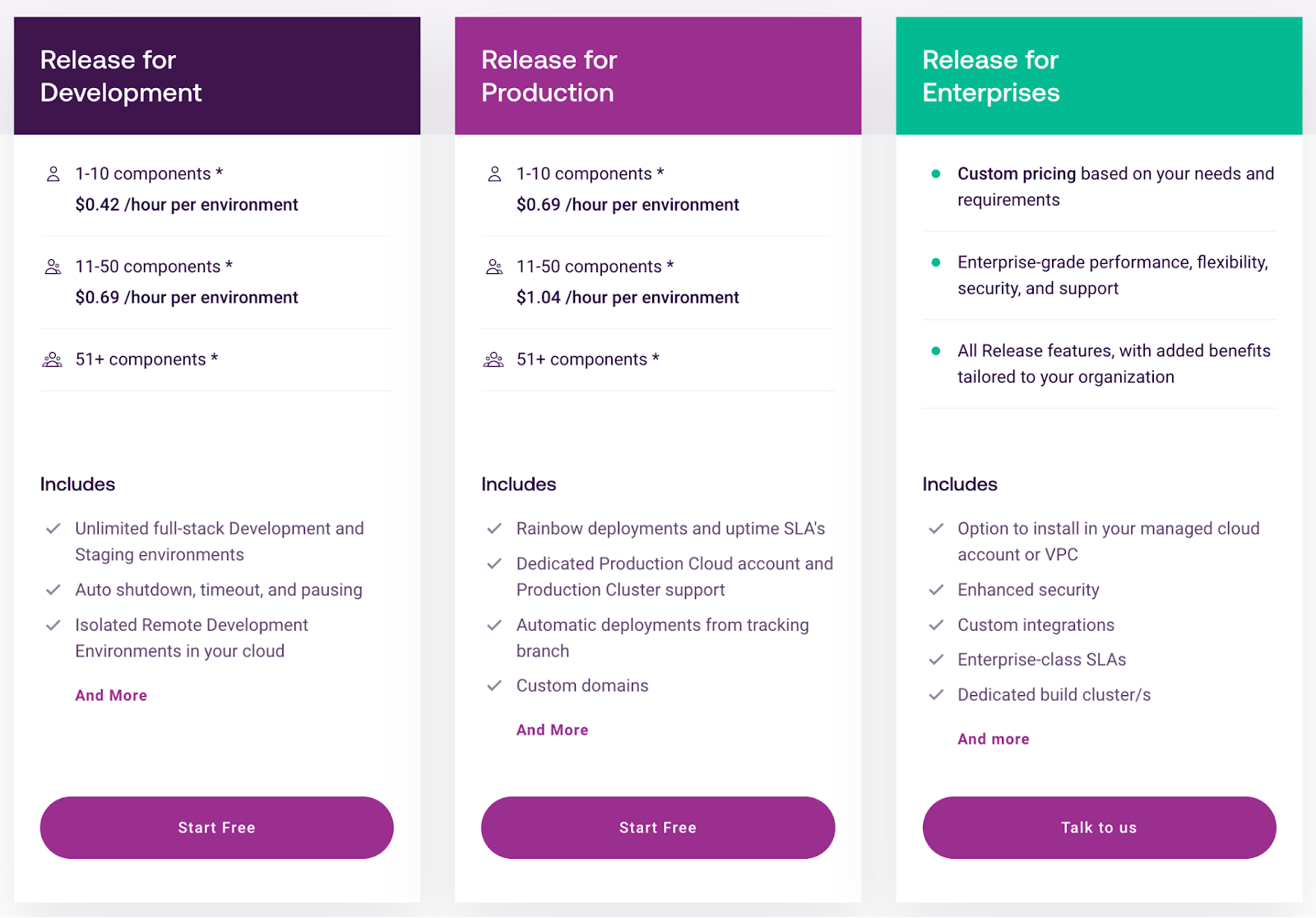 Bunnyshell vs Release.com Pricing