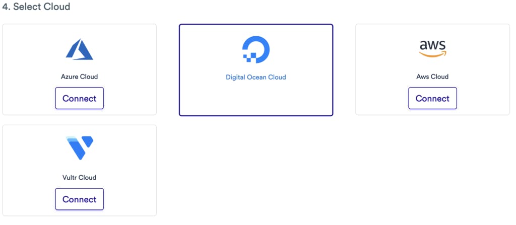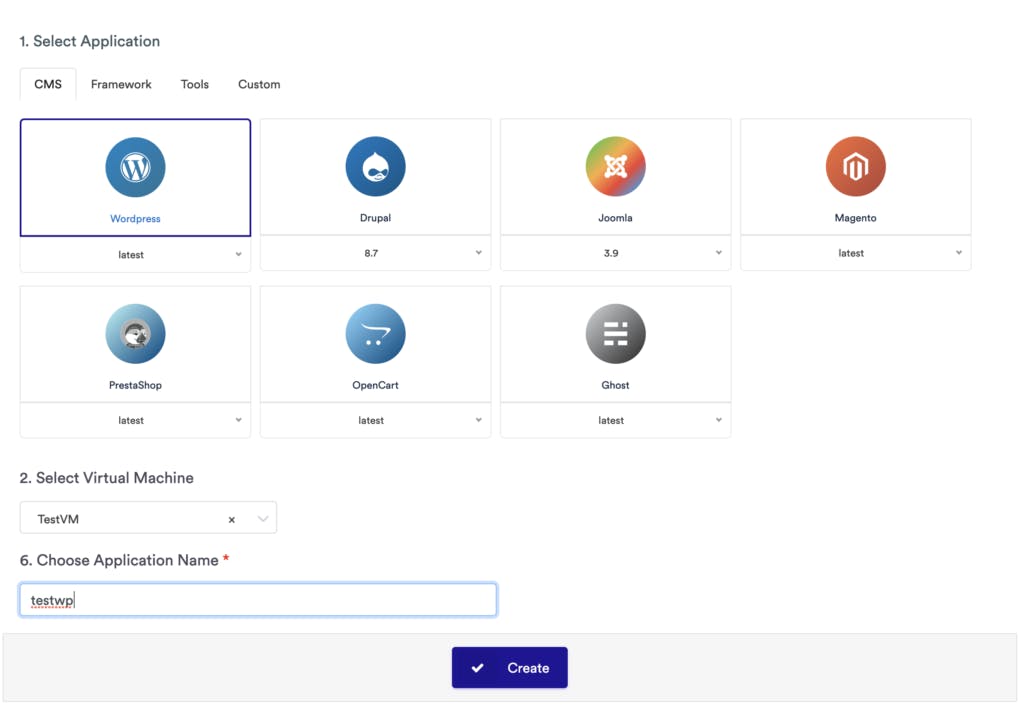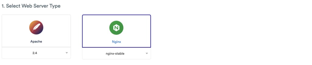 After connecting your cloud account, you can easily create a Virtual Machine. First, select the webserver type you want to go with: