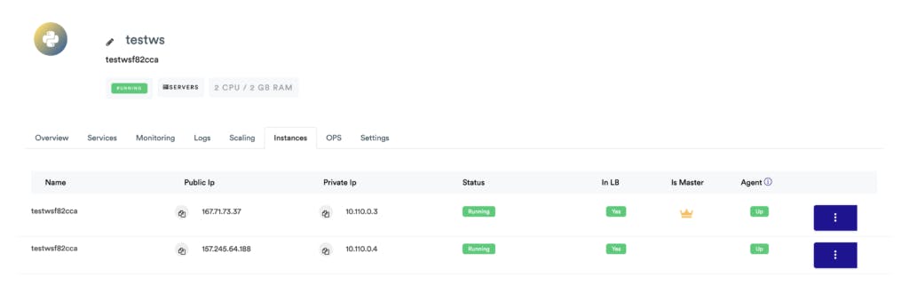 You can also see a list of created instances and restart/stop/delete machines that are not masters, or assign another machine as a master.