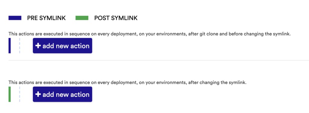 So for example, if you want to stop a process before the deployment finishes, you would use the pre symlink hook, and if you want to start that process after the deployment finishes you would use the post symlink hook.