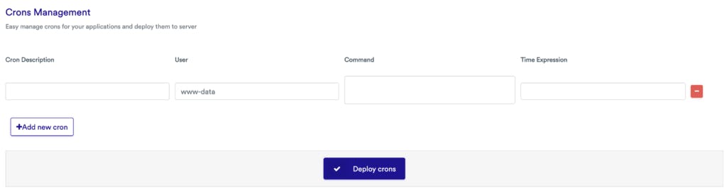 Aside from this you also have a section in which to define cron jobs if your apps need them and a list of deployments to check when your last deployment was created and so on.