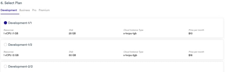 2. The VM Size – select one of the VM plans that your cloud provider offers according to your needs and budget:
