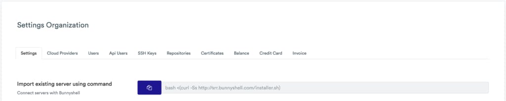 If you already have a virtual machine or a server up and running and you want to have it managed by Bunnyshell, all you have to do is log in to the server via SSH or however it is your login to your asset and run your Bunnyshell install command: