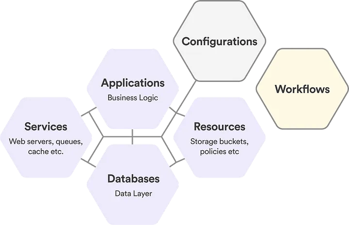 Outputs: Kubernetes cluster(s), cloud resources (managed databases or queues, storage buckets), VMs or even serverless runners.