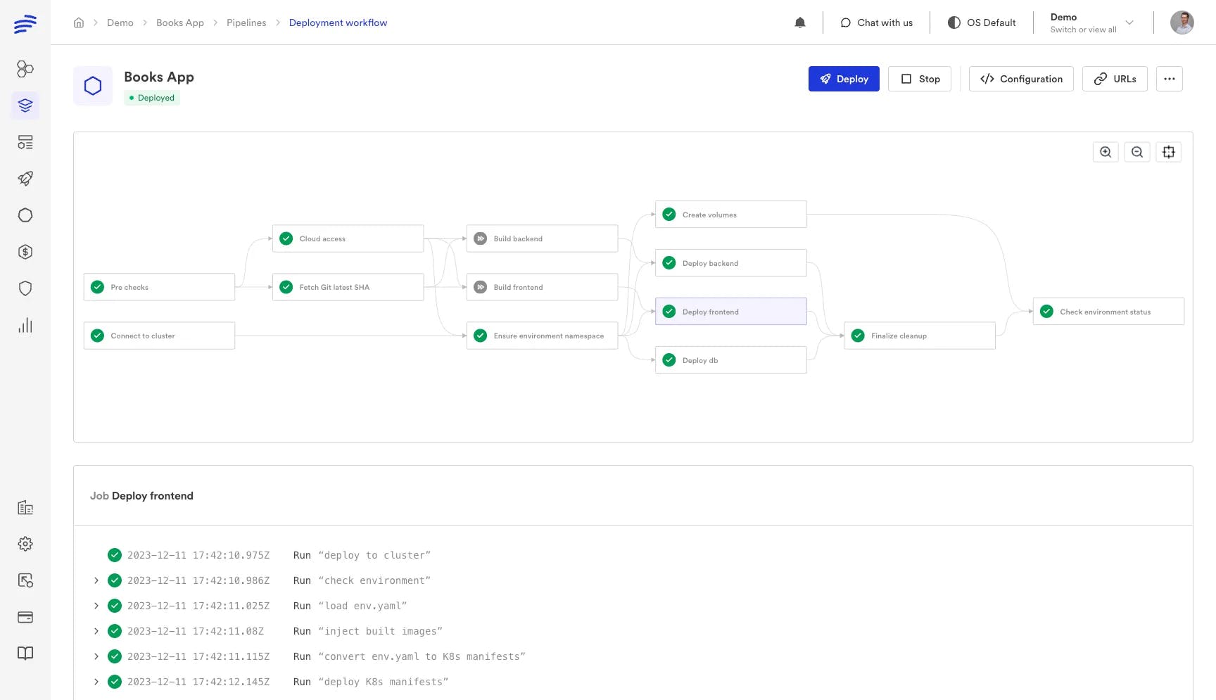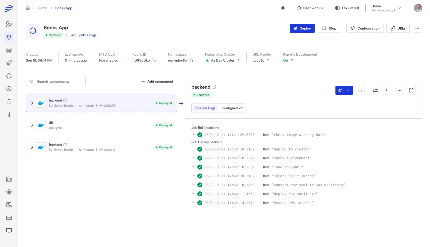 Bunnyshell stays true to this value by offering developers the ability to see deployment logs (as well as start/stop logs) and also see container logs in real-time, so debugging can be performed without any need for infrastructure access.